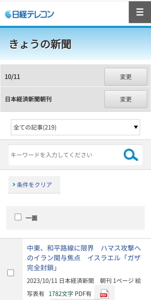 日経テレコンでは、日経新聞朝刊、夕刊の記事が確認できます。